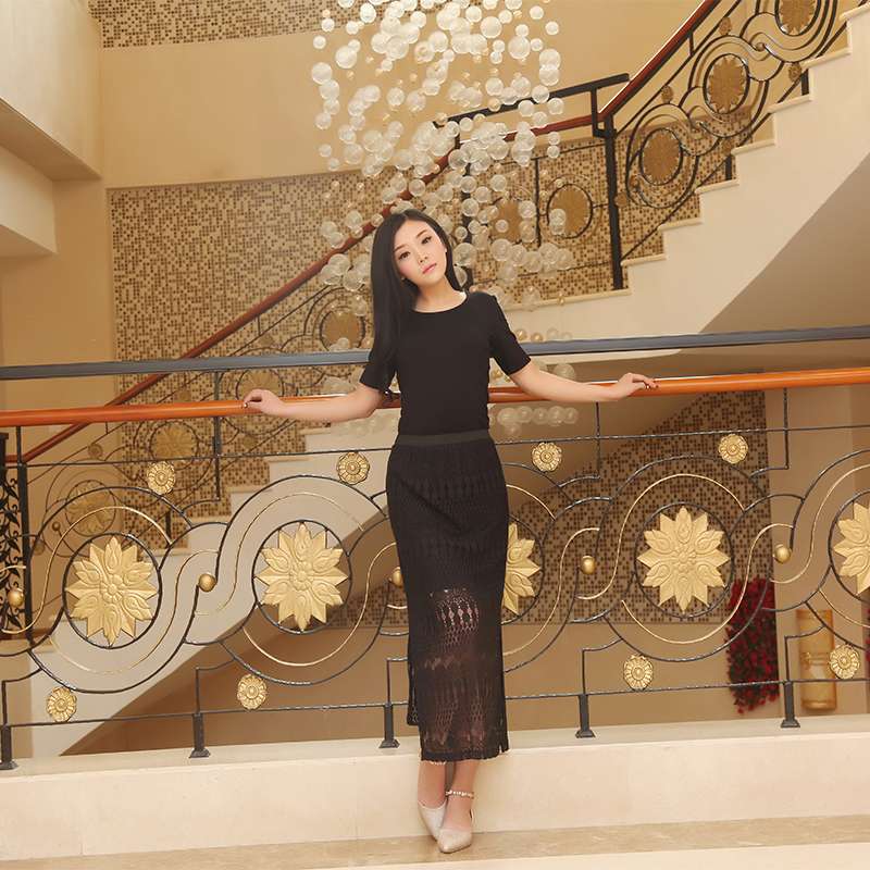 贅沢な透かし編みレースが施された上品なスリットスカート。