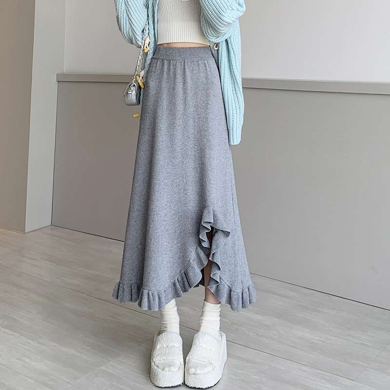 ウエストゴム仕様のスリットスカートは、リラックスした着心地を提供。マーメイドラインの裾に施されたフリルデザインが、女性らしさを引き立てる。柔らかな素材感が特徴で、動くたびに優雅に揺れ、大人の可愛さを演出。デイリースタイルにも特別なシーンにもぴったりな一枚。魅力的なシルエットで、視線を集めること間違いなし。