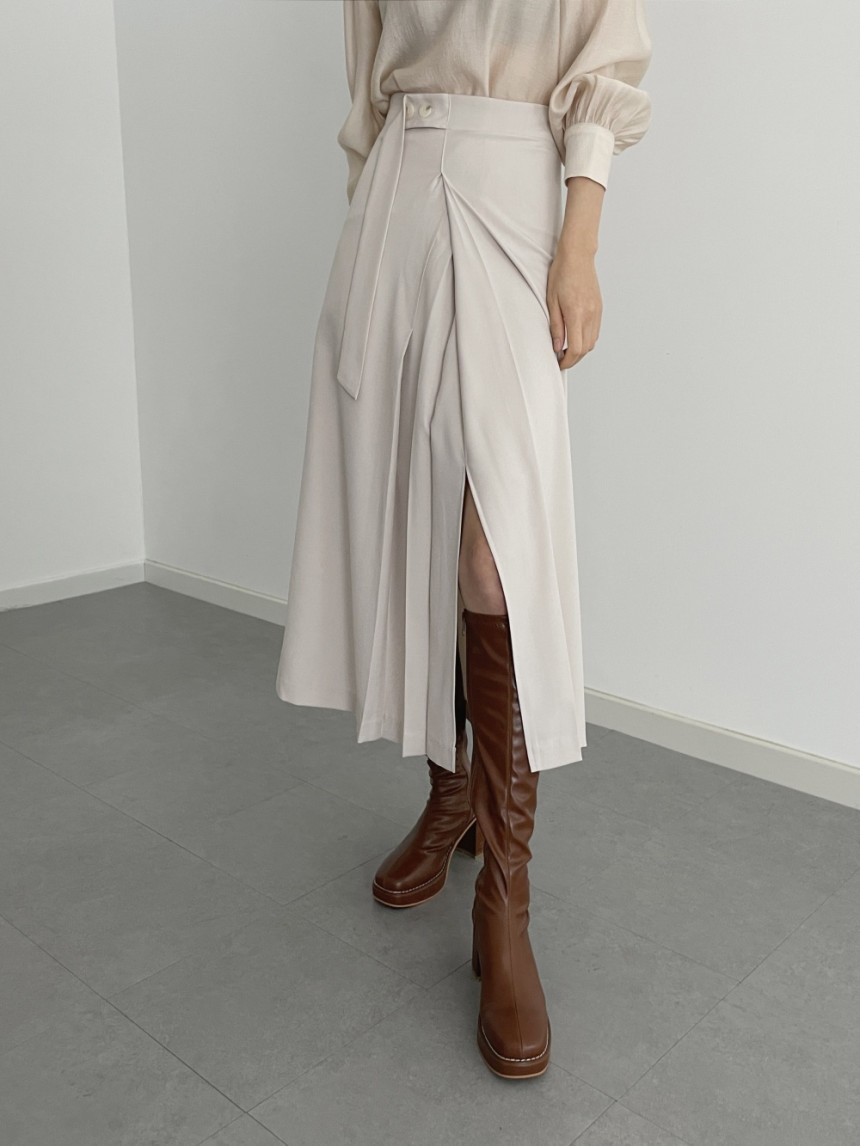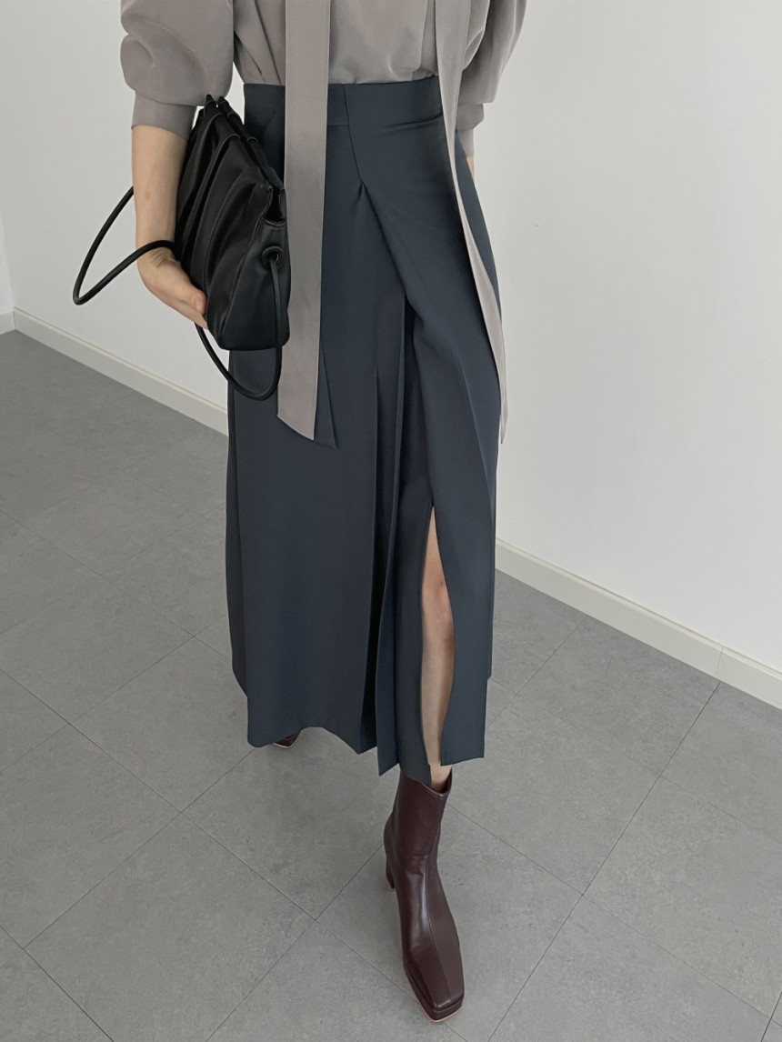洗練されたデザインが魅力のレイヤード風プリーツスカートです。 前開きの個性的なデザインとスリットスカートの機能性を兼ね備え、歩くたびに美しく揺れるシルエットを演出。 オフィスからカジュアルまで幅広いシーンで活躍し、大人女性の上品なスタイリングを叶えます。