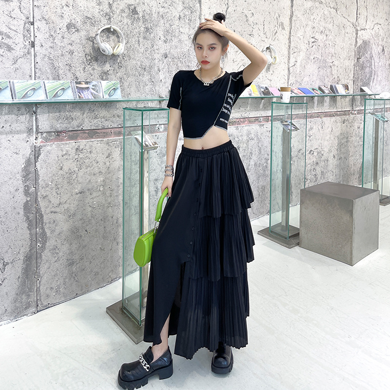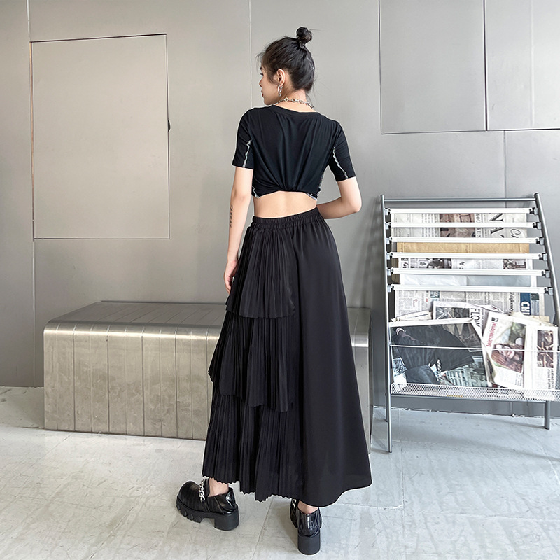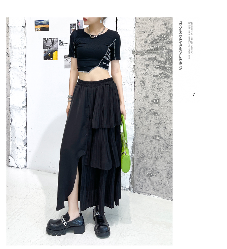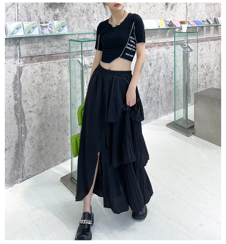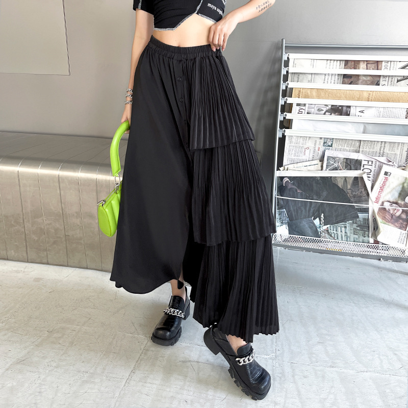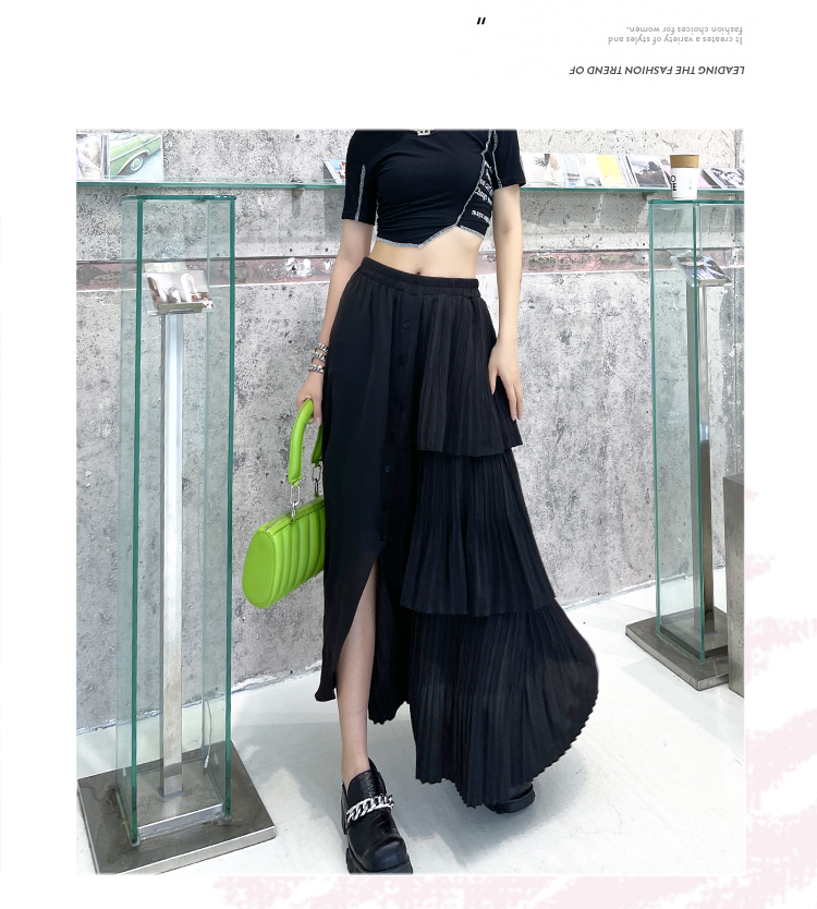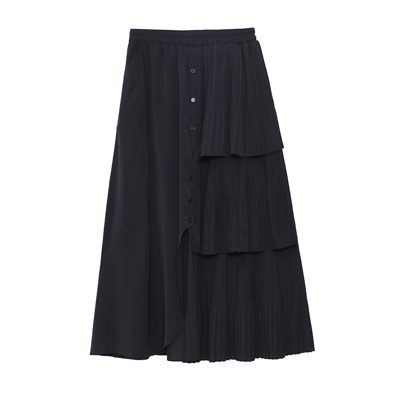 個性的なマーメイドシルエットが魅力の多層プリーツスカート。 不規則な段重ねデザインとスリットスカート仕様で、歩くたびに揺れる美しいドレープが印象的。 カジュアルからおしゃれ着まで幅広く活躍する新作アイテムです。