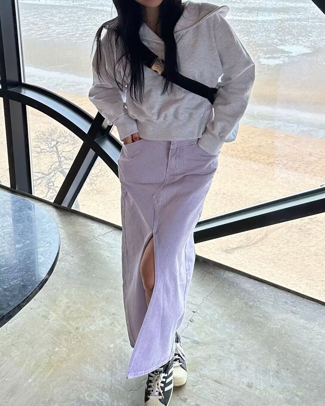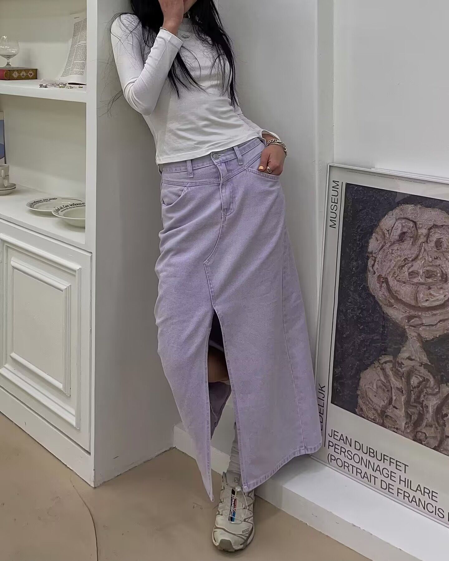 カジュアルからきれいめまで幅広いコーディネートに対応するスリットスカートで、