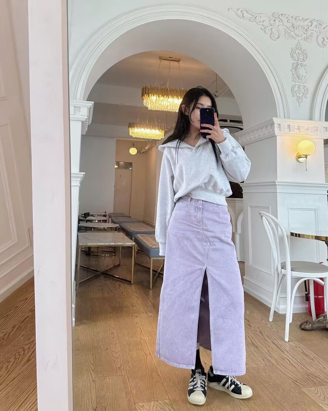 韓国風のトレンド感溢れるロング丈が大人の女性らしさを引き立てます。