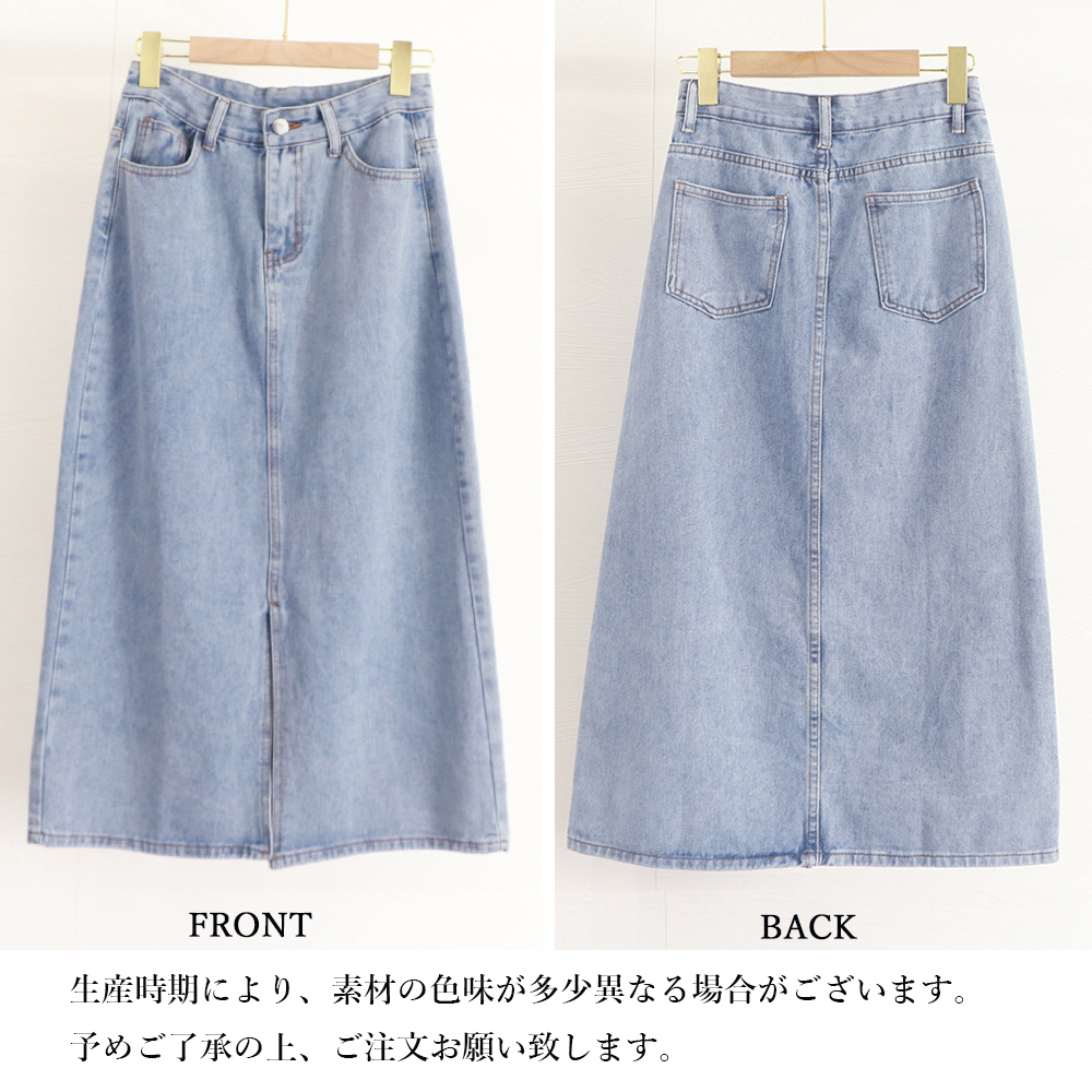 カラー:チャコールブラック/インディゴ/サックス サイズ:S/M/L [S]スカート丈:約80cm ウエスト:約64cm ヒップ:約86cm [M]スカート丈:約81cm ウエスト:約68cm ヒップ:約90cm [L]スカート丈:約82cm ウエスト:約72cm ヒップ:約94cm 裏地:なし 伸縮性:なし 透け感:なし