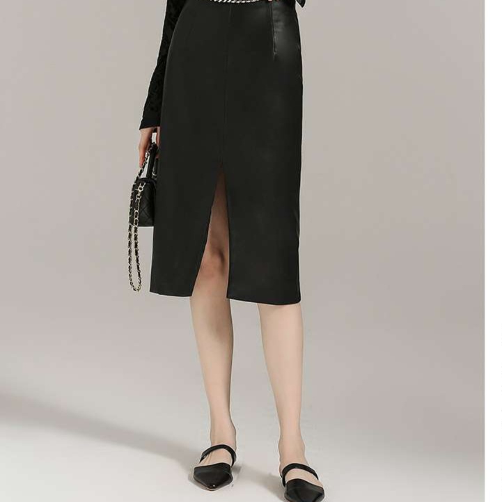 洗練されたシャープなシルエットのタイトスリットスカート。ウエストに施されたチェーンベルトがスタイリッシュなアクセントとなり、上品で大人の魅力を引き立てる。膝下丈のデザインは、落ち着きのある印象を与え、様々なシーンにマッチする。シンプルながらも存在感のある一着で、洗練されたコーディネートを楽しめる。